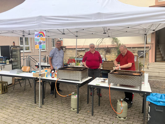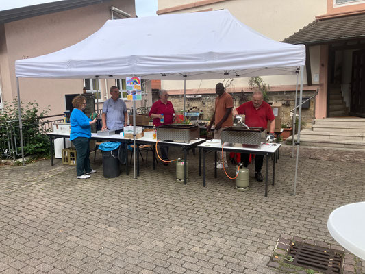 Nach drei Jahren Pause wurde das Sommerfest nun erstmals zwischen Kirche und Vitussaal gefeiert - und das erfolgreich. Das Wetter machte mit, alles war bestens vorbereitet und zahlreiche neue, aber auch treue, langjährige Unterstützende fanden den Weg ins Zentrum von Dittigheim. Ob Tombola oder Verkauf kleiner Geschenke, Kaffee und Kuchen, Gegrilltes und Gekühltes, alles kommt der Arbeit im Dorf zu Gute.